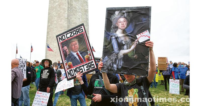 【政局】美國多個不滿總統特朗普及政府效率部(DOGE)主管馬斯克的民權組織、工會、性小眾倡議者等人士,上周六(5日)在全國各地發起「不要插手!」示威集會,反對特朗普政府在縮減政府規…