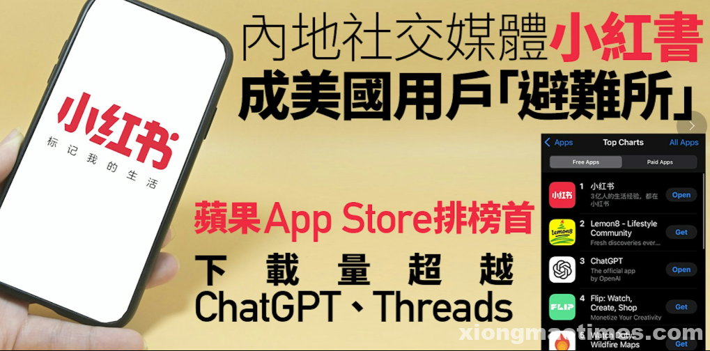 【社交网媒】近日大量美國「TikTok難民」湧入另一中國社交平台小紅書,令小紅書國際版REDNote近日登上Apple Store下載榜首,據內地移動應用數據分析平台七麥的數據顯示…