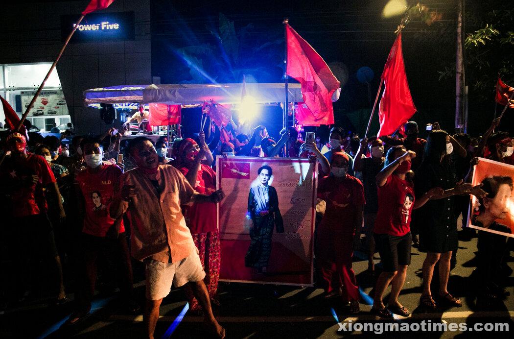 周日大选日,全国民主联盟的支持者举着昂山素季的肖像在缅甸仰光游行。 SAI AUNG MAIN/AGENCE FRANCE-PRESSE — GETTY IMAGES 【熊猫时报讯…
