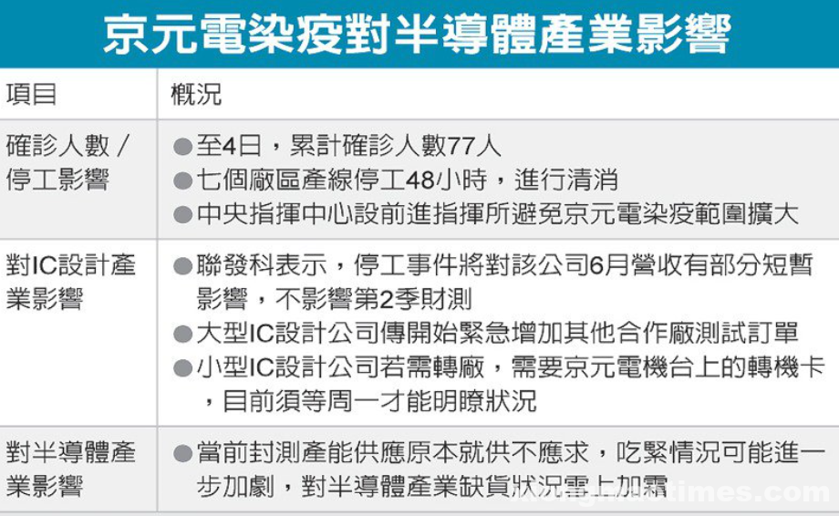 【熊猫财经】半導體晶片測試大廠京元電竹南廠移工發生群聚染疫,昨(4)日上午還堅持營運,但確診人數不斷增加,京元電昨日下午公告,晚班起七個廠區產線全面停工48小時、進行清潔消毒。京元…