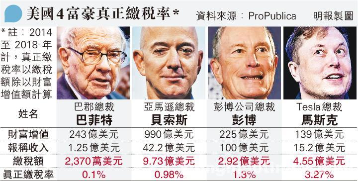 【熊猫时报讯】美國獨立傳媒ProPublica周二(8日)引述一批稅務資料報道,披露部分美國富豪利用避稅策略,令繳付稅款大減。最富裕的25名富豪的身家在2014至2018年間大增4…
