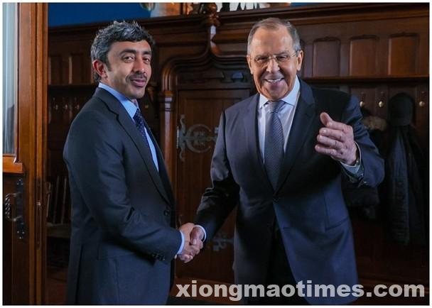阿卜杜拉(左)出访莫斯科与拉夫罗夫(右)会晤。
