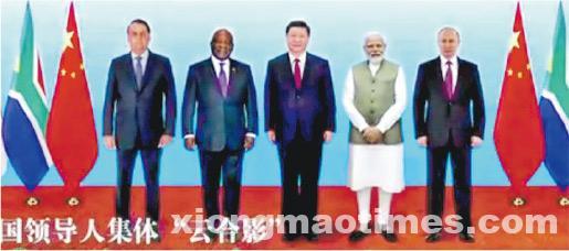 習近平稱目前冷戰思維和強權政治陰霾不散,傳統和非傳統安全威脅層出不窮。一些國家力圖擴大軍事同盟謀求絕對安全,脅迫別國選邊站隊製造陣營對抗,漠視別國權益大搞唯我獨尊。「如果任由這種危險勢頭發展下去,世界會更加動盪不安」。他呼籲金磚國家應在涉及彼此核心利益問題上相互支持,踐行真正的多邊主義,維護公道、反對霸道,維護公平、反對霸淩,維護團結、反對分裂。「中方願同金磚伙伴一道,推動倡議落地見效,為世界注入穩定性和正能量」。