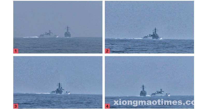 圖- 加拿大環球新聞台在加軍蒙特利爾號護衛艦上拍攝的畫面顯示,中方軍艦高速切入美國鍾雲號驅逐艦前方,並通過無線電警告美艦駛離,否則會碰撞,最終鍾雲號改變航向並減速,兩艦以約137米距離擦身而過。加艦指揮官認為這是中方的故意行為,行動中另一艘中國軍艦在約1公里外尾隨加艦。(影片截圖)