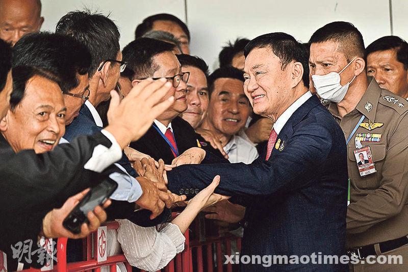 【政局】泰國政治迎來變局之際,前首相他信(Thaksin Shinawatra)結束長達15年的流亡生涯,昨(22日)乘私人飛機返國,即時被捕還押監獄,從機場至最高法院沿途有大批支持他的「紅衫軍」夾道歡迎。然而,他信回國的時機正值為泰黨突然與對立多年的親軍方政黨結盟,得以取得足夠國會票數籌組新政府,惹起事涉幕後交易的廣泛質疑。