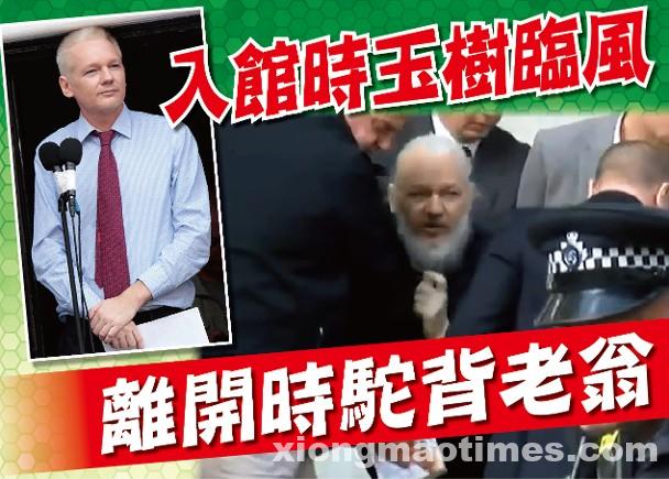 47歲的阿桑奇被困7年,外表比年齡老邁,變成白鬚老翁。他被英警押走時,駝着背及步履蹣跚,舉着手指唸唸有詞,似乎在指摘警員。阿桑奇被捕消息由俄羅斯傳媒率先發放,警方其後證實,在美國發出的引渡要求下,拘捕阿桑奇,又指他未有向法庭自首。警方稱,厄瓜多爾撤回庇護後,該國大使邀請他們進入大使館拘捕阿桑奇。他被帶到倫敦市中心一間警局,之後會在西敏區法院上庭。