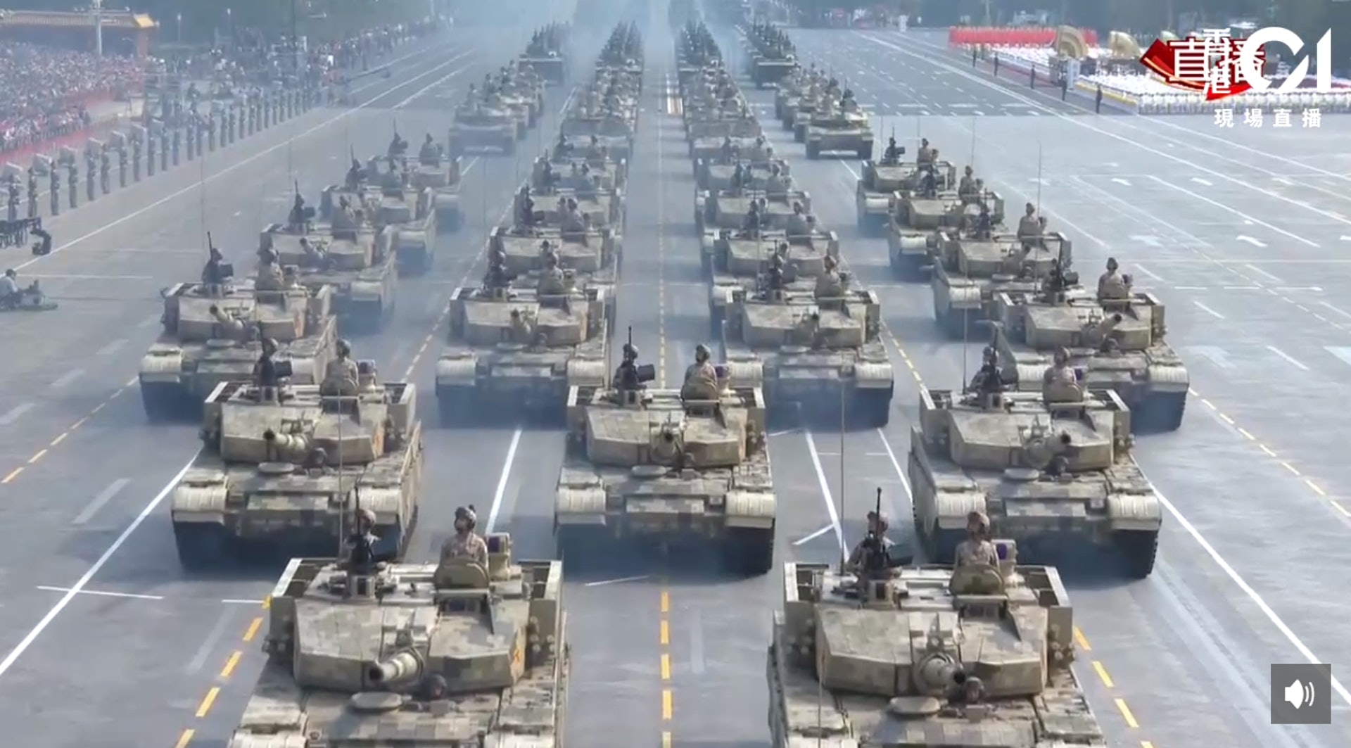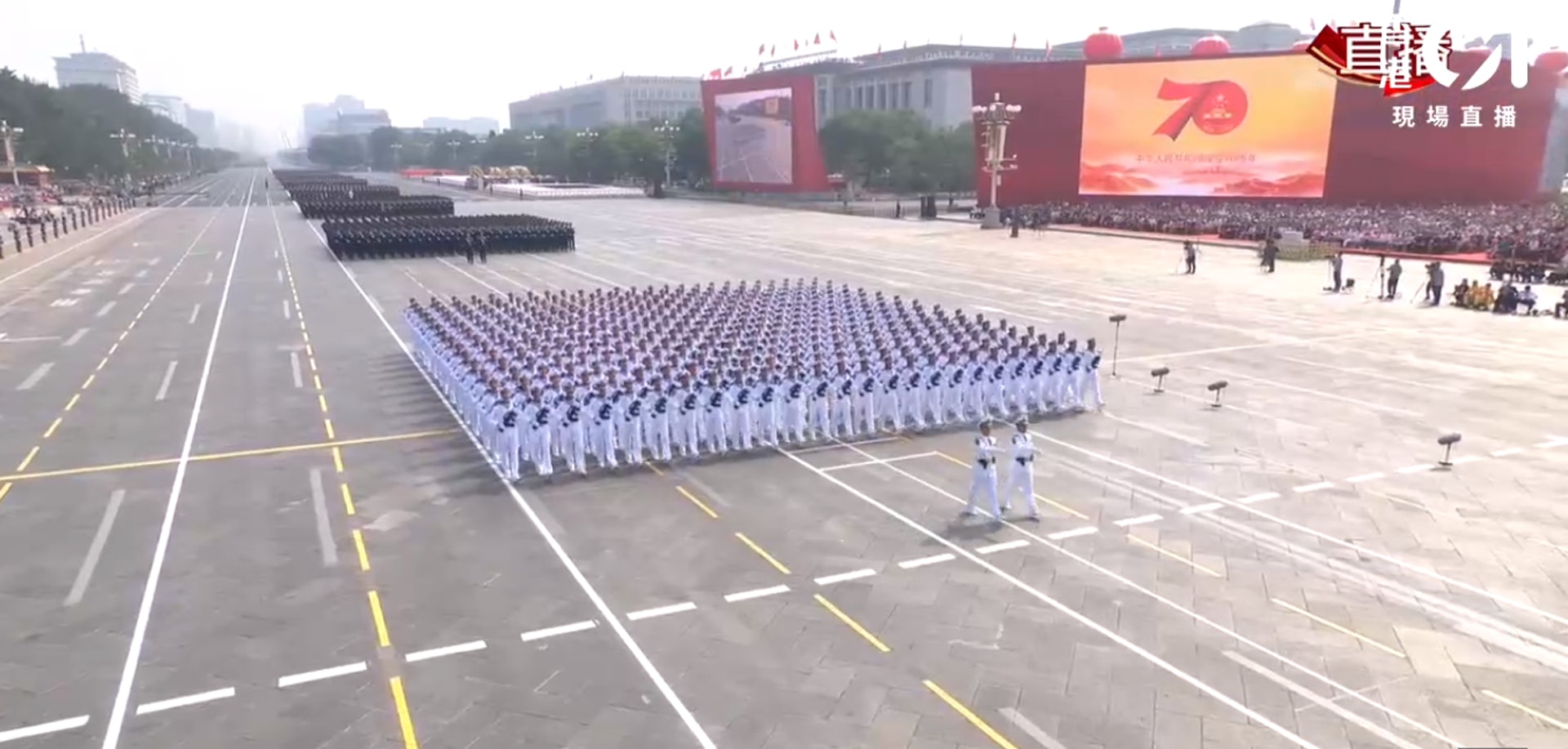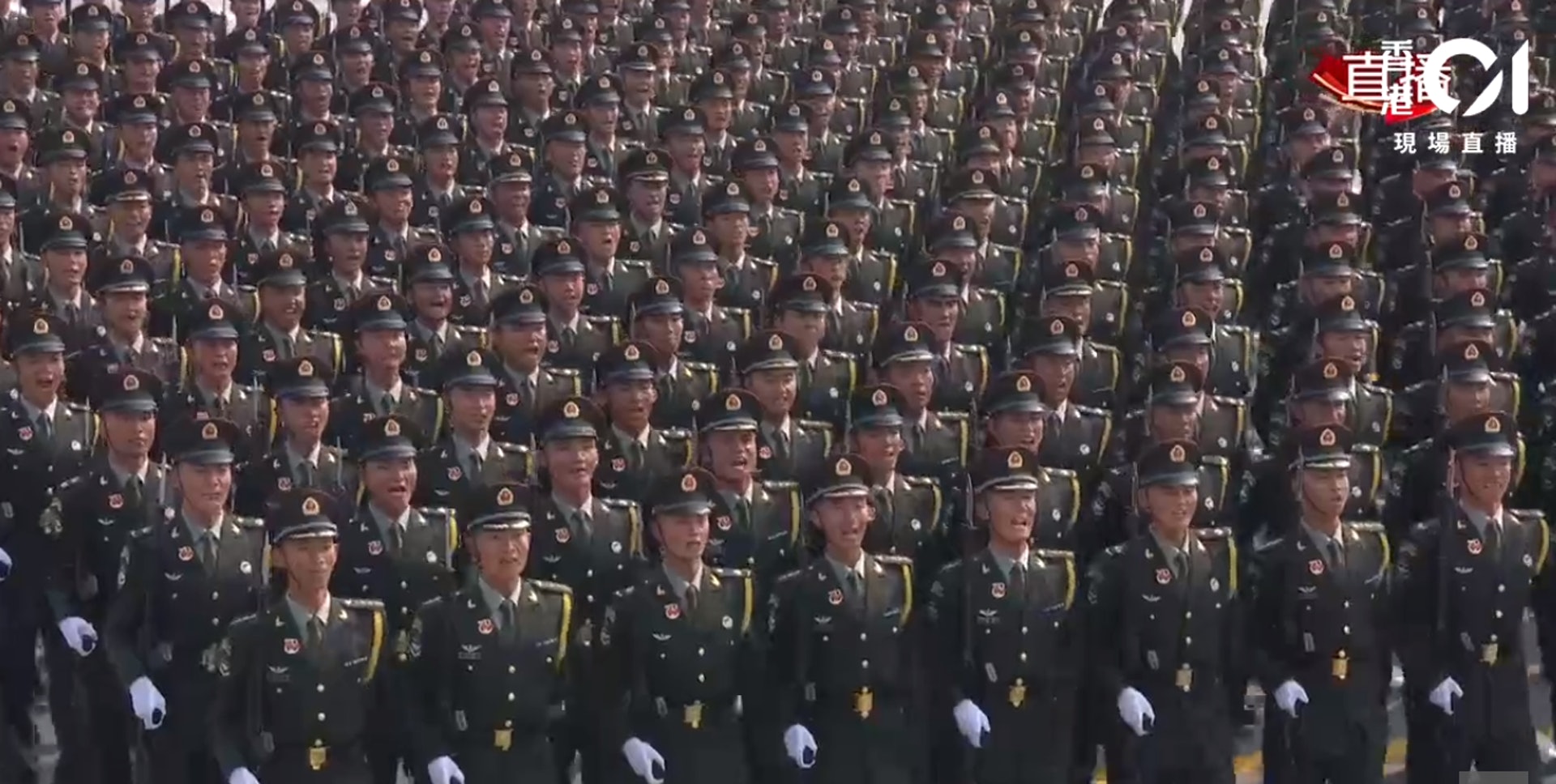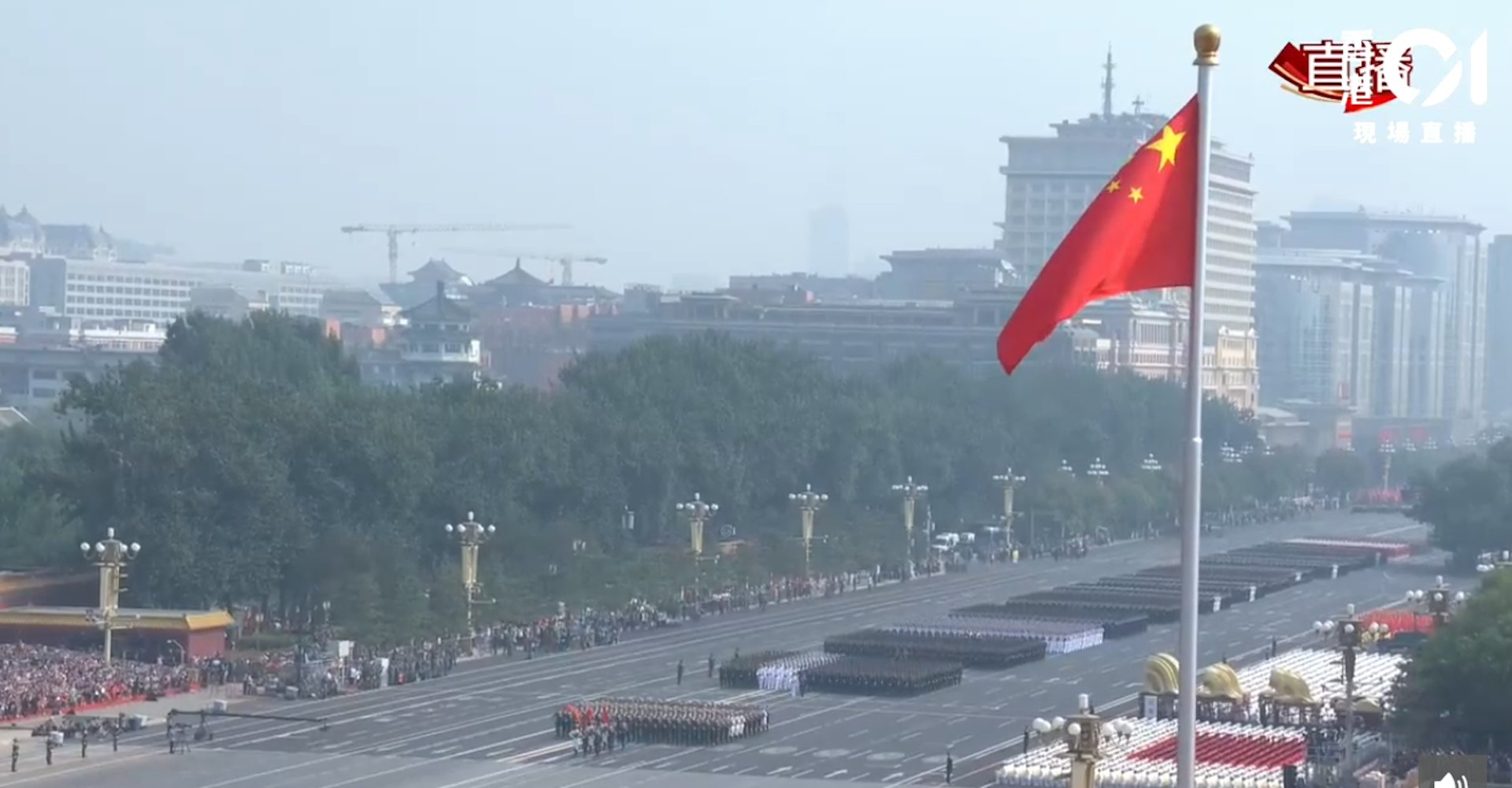 約10萬名群眾參與天安門遊行活動。(香港01直播截圖)
