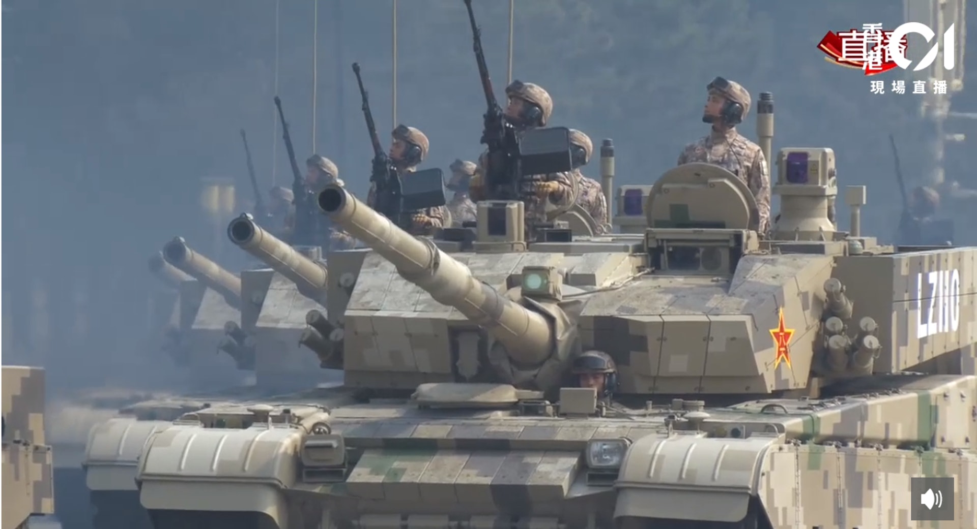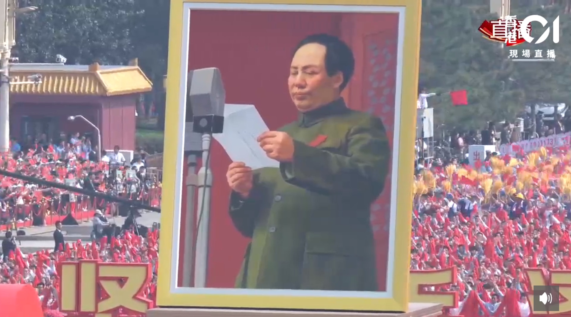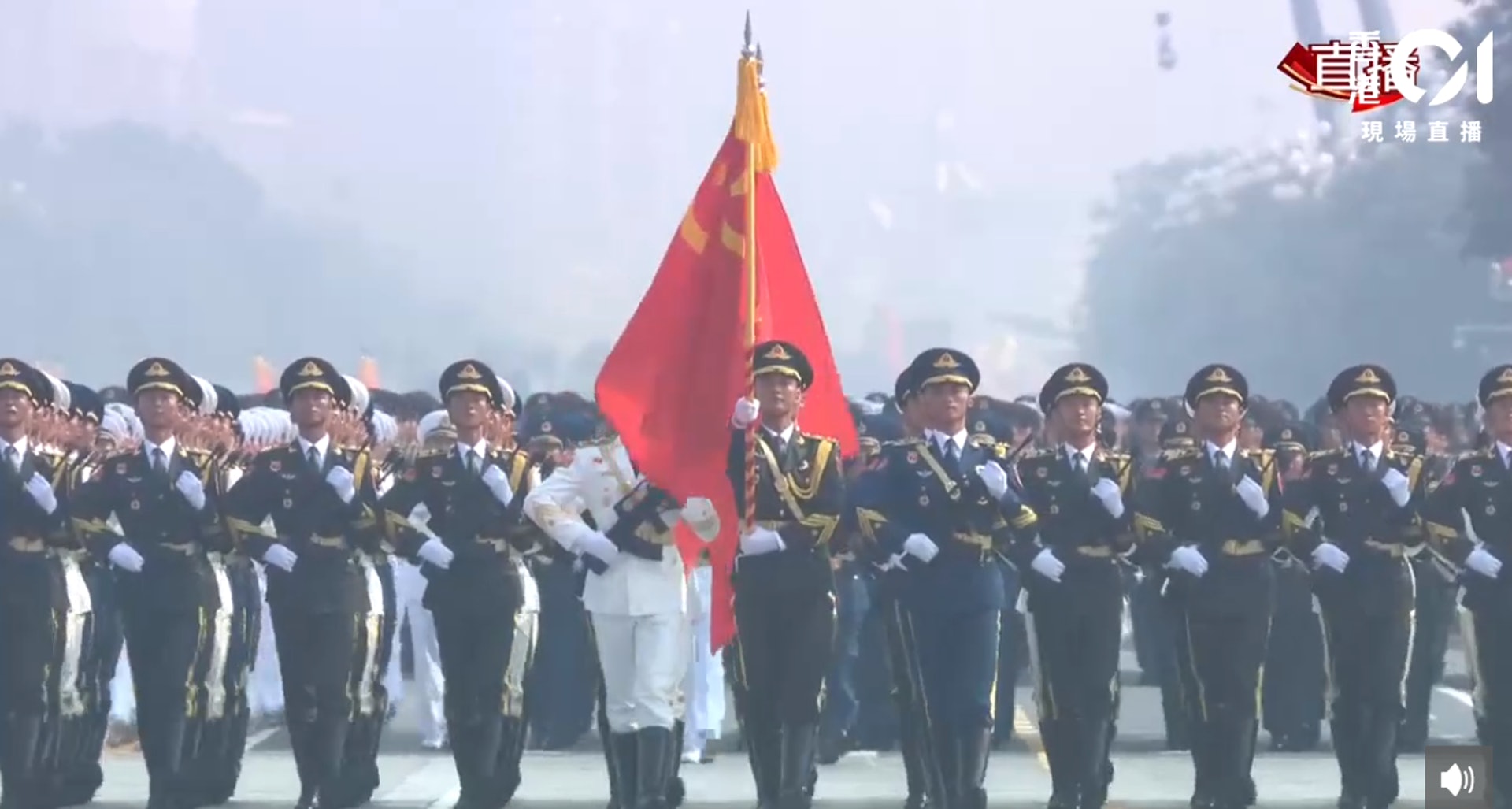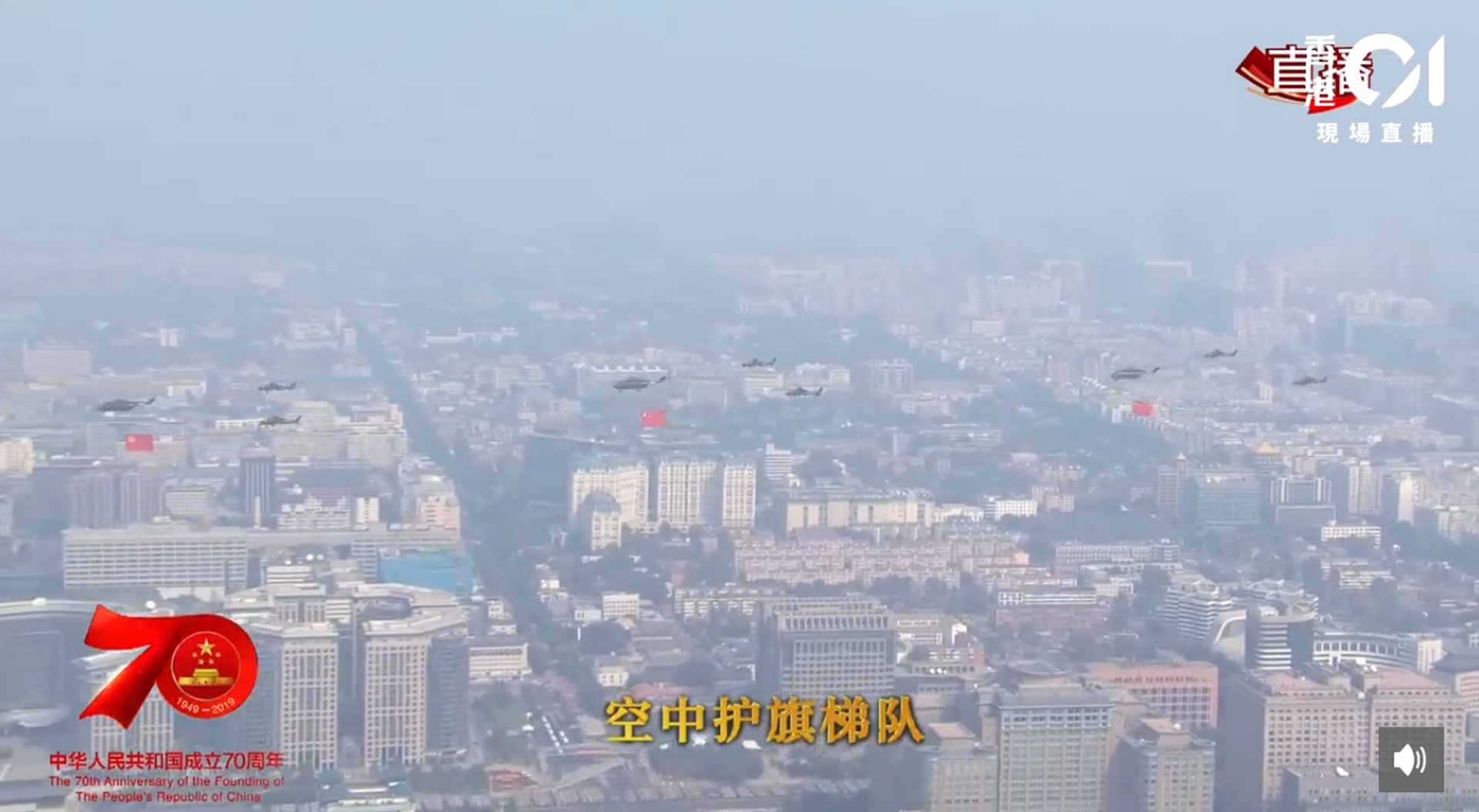 約10萬名群眾參與天安門遊行活動。(香港01直播截圖)