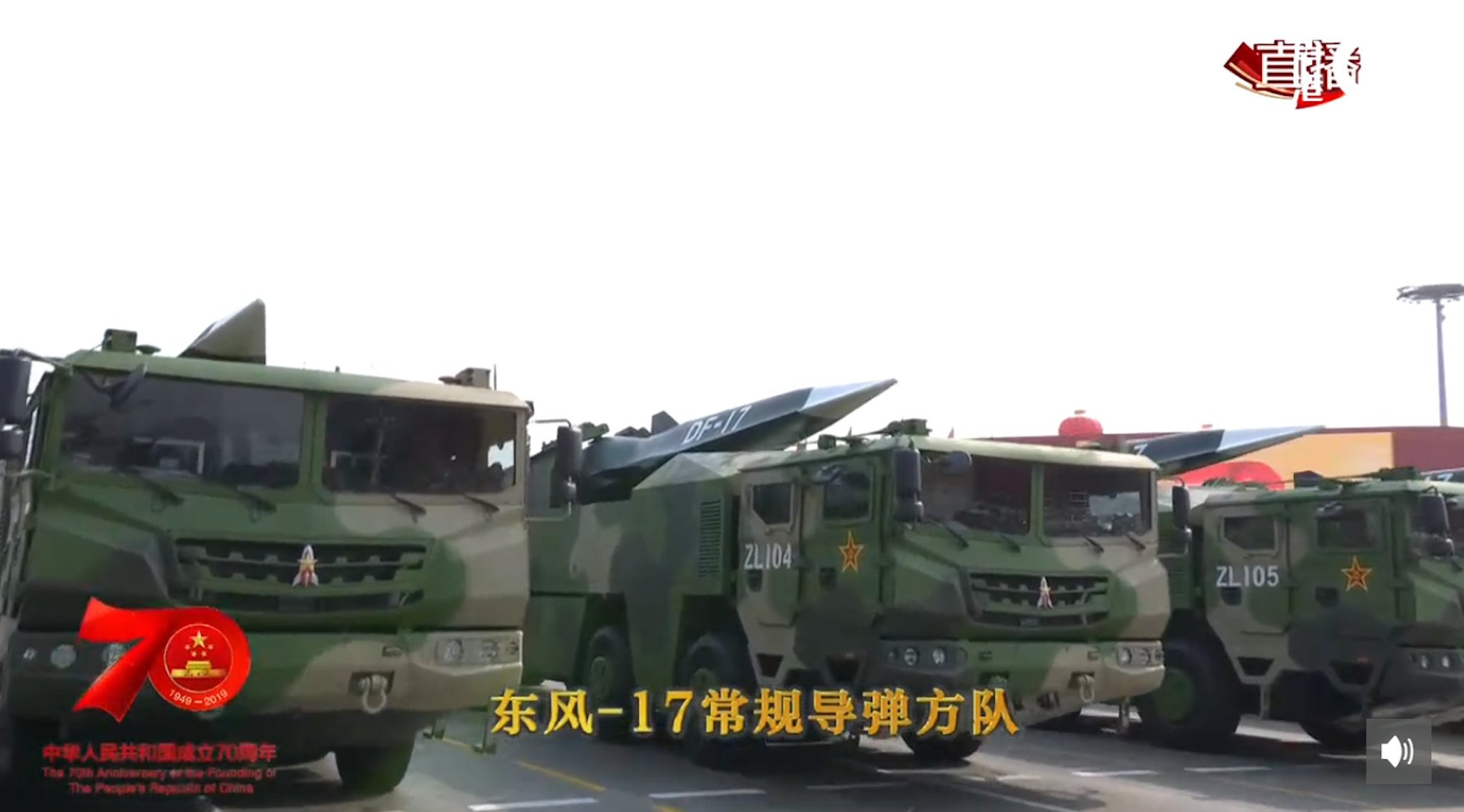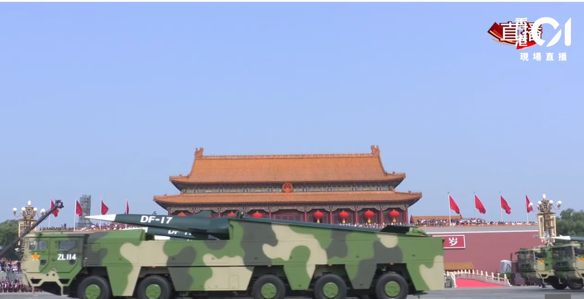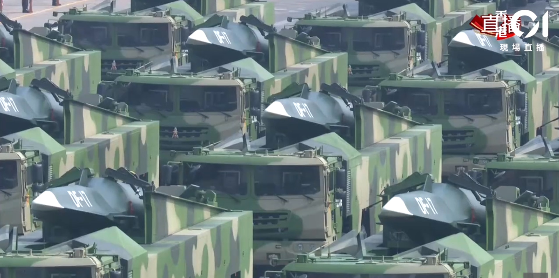 東風-41洲際導彈亮相國慶閱兵。(直播截圖)