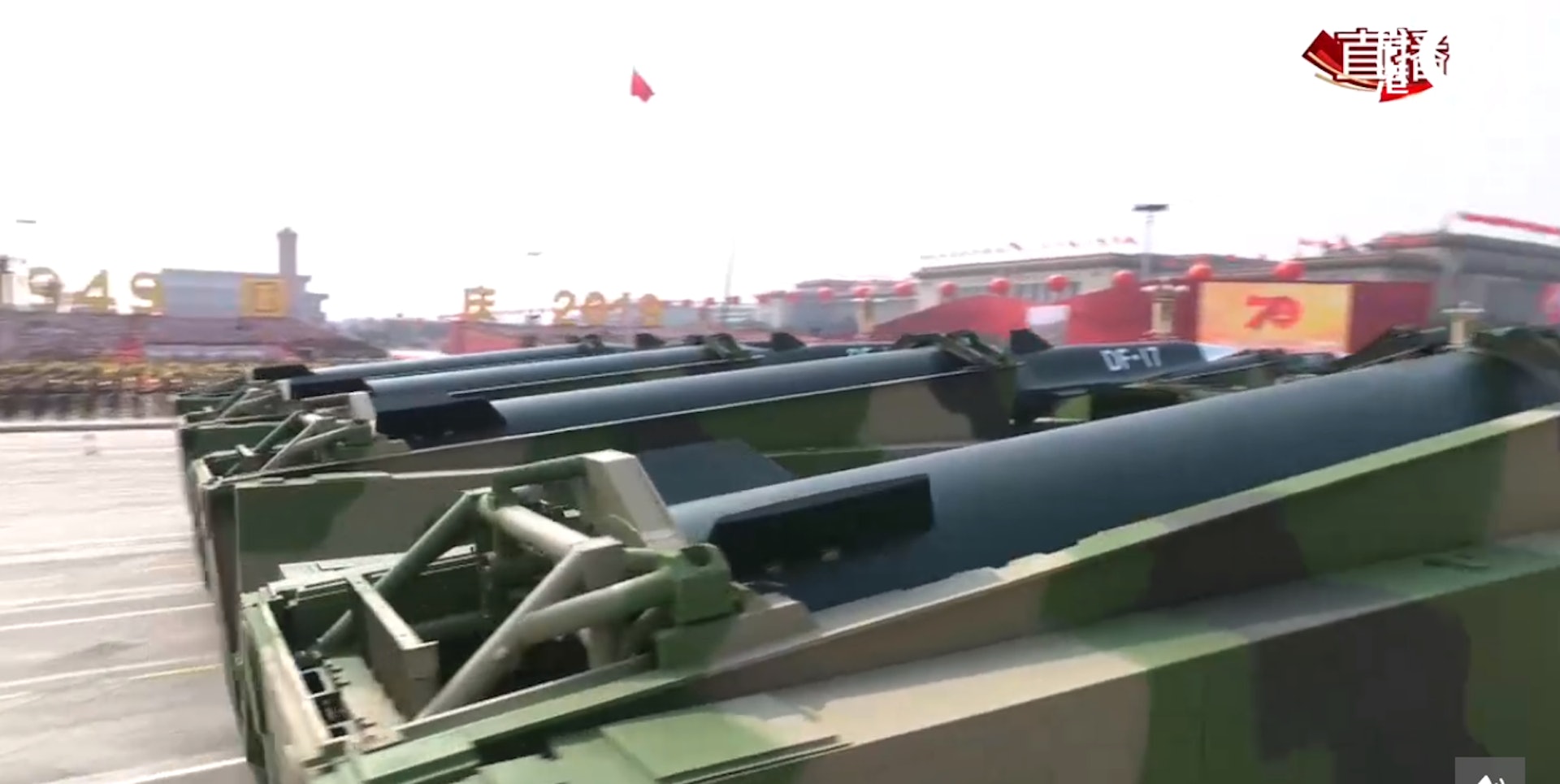 中國現役導彈武器裝備中射程最遠的一個型號「東風-41」洲際導彈亮相國慶閱兵。