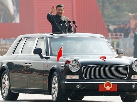 两篇消息提到,面对着庆贺的人潮和手上不停挥舞的鲜红色国旗,站在新中国开国元首毛泽东1949年10月1日正式宣布中华人民共和国成立的地方,习近平称:“今天,是社会主义中国站在了世界舞台上。”习近平还称:“没有力量能阻挡中国人和中国向前进。”