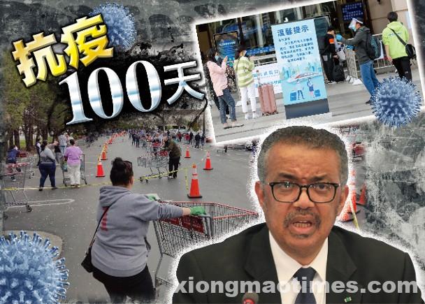 【熊猫时报讯】周四(9日)是中国大陆去年12月31日向世界卫生组织通报首宗新冠肺炎个案后第100日,截至香港时间周五(10日)早上,全球累计160万人确诊,逾9.5万人病亡。卷入政治风波的世卫总干事谭德塞在Twitter发文,指组织于过去100日公平、客观及中立处理疫情,在未来的日子亦会继续这样做,又透露世卫于未来数日将发布新的防疫指引。