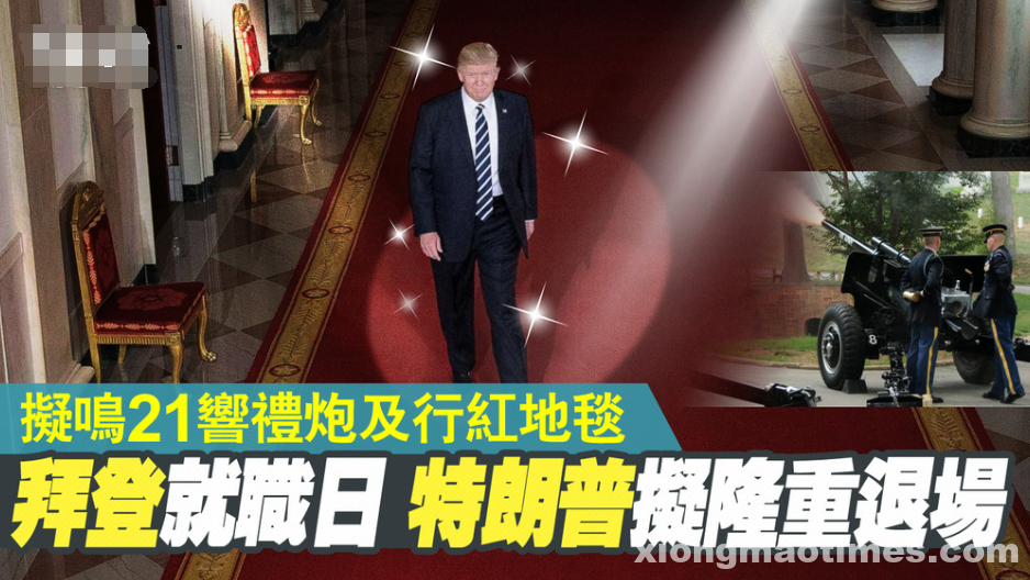 【熊猫时报讯】拜登將於下周三(20日)舉行美國總統就職典禮,美國總統特朗普已表明不會出席拜登就職典禮。特朗普據報想於拜登就職當日再出風頭,計劃於同日早上舉行隆重的卸任儀式,更計劃安排鳴放21響禮炮。