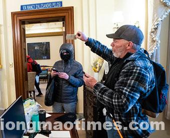 【熊猫时报讯】美國「國會山莊之亂」造成五人死亡,這些引發暴亂的特朗普支持者更衝入眾議院議長佩洛西(Nancy Pelosi)的辦公室(圖),現場片段可見,有示威者打開了佩洛西的電腦查看裏面的郵件,而佩洛西辦公室更證實,至少有兩部國會電腦被盜,其中一部來自佩洛西辦公室,是一部手提電腦。佩洛西幕僚漢米爾(Drew Hammill)指該電腦屬於會議室,作簡報用途。