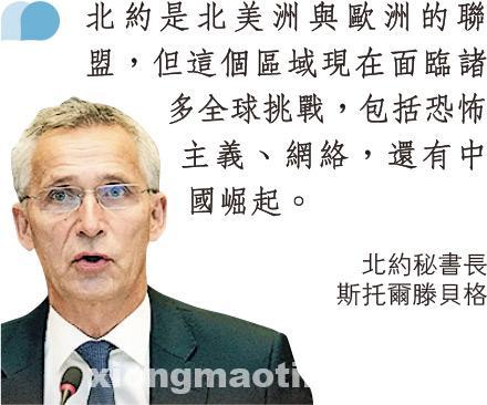 【政局】英國《金融時報》周一(18日)刊登了北約秘書長斯托爾滕貝格的訪問,他指中國已通過網絡能力、新技術和遠程導彈對歐洲安全產生影響,應對中國崛起造成的安全威脅將是北約未來存在依據的重要一環,強調未來10年的北約新政策將「詳盡」處理如何保護北約盟國免受這些威脅的問題。《金融時報》形容有關言論標誌着北約這個西方聯盟對自身目標的一次重大反思。中國外交部發言人趙立堅周一回應,促北約摒棄冷戰思維和意識形態偏見,以客觀積極開放的態度看待中國發展。